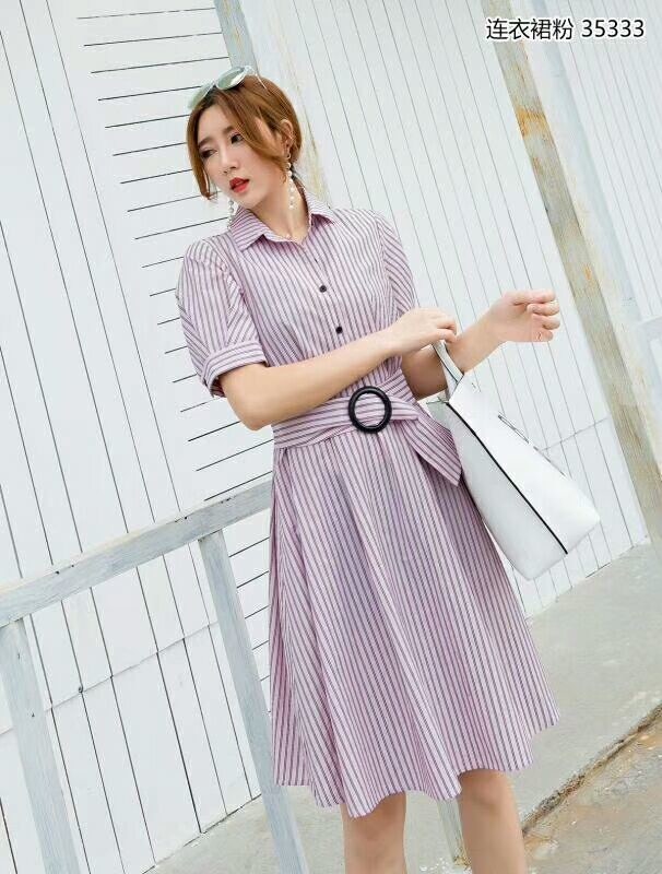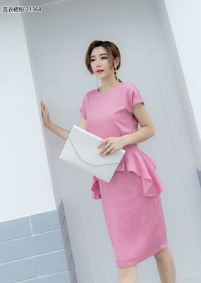 Saner2018夏季新款气质通勤简约修身显瘦大摆雪纺连衣裙